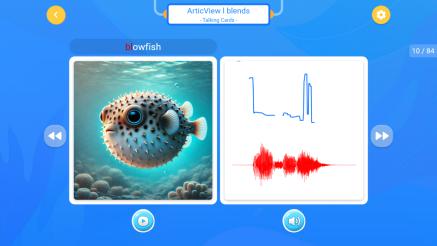 Dr.Articulation® Talking Cards enhance speech sound accuracy and articulation development through interactive Talking Cards that feature real-time sound wave and pitch visualizations. Combined with engaging matching games and visual feedback, they help strengthen precise speech production and phonetic awareness